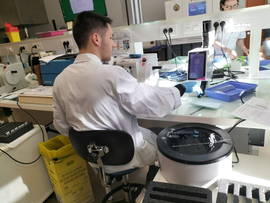 Lors de notre visite du laboratoire, nous avons pu observer le travail méticuleux des équipes : préparation des tissus, découpe ultrafine, coloration, puis numérisation avec une précision quasi chirurgicale. Derrière chaque image affichée à l’écran se cache une chaîne technique exigeante et une expertise humaine essentielle. « Le numérique ne remplace pas le regard du spécialiste, il est un outil à sa disposition », précise Cécile Jaglin-Grimonprez, la directrice générale du CHU d’Angers.